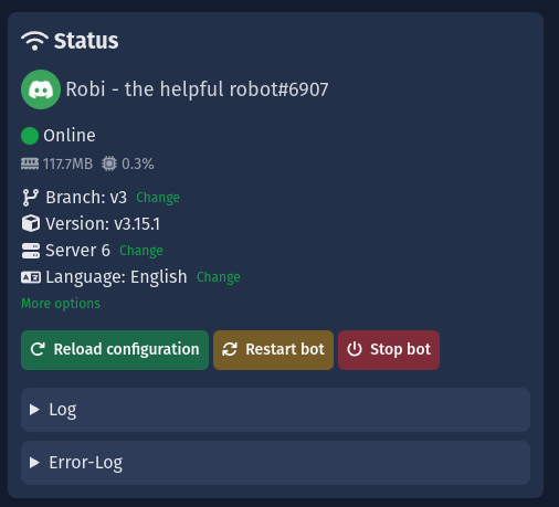 2. Next, click on "More options" in the Bot-Status-Panel.
