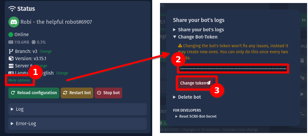 5. Enter your new Bot-Token and confirm it by pressing "Change token".